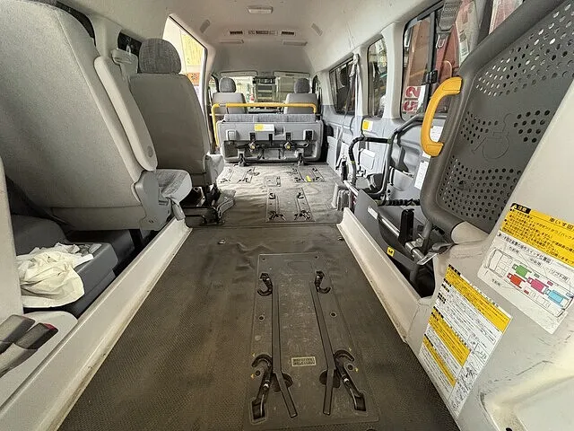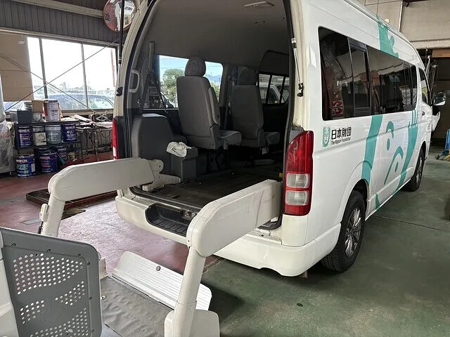 土浦市の特別養護老人ホームの施設様より車いす固定装置の不具合でハイエースウェルキャブをお預かりしました。