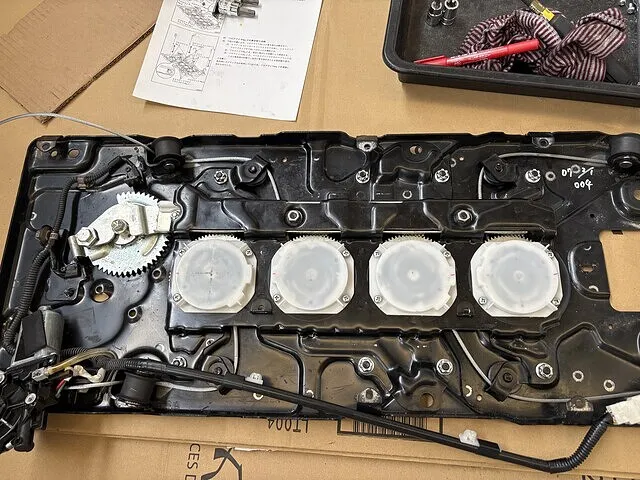 本体をそっくり外し、作業しやすい場所でバラしてワイヤー交換と土埃等で汚くなっているので清掃し、グリスアップします。本体を外した土台も綺麗に清掃しました。